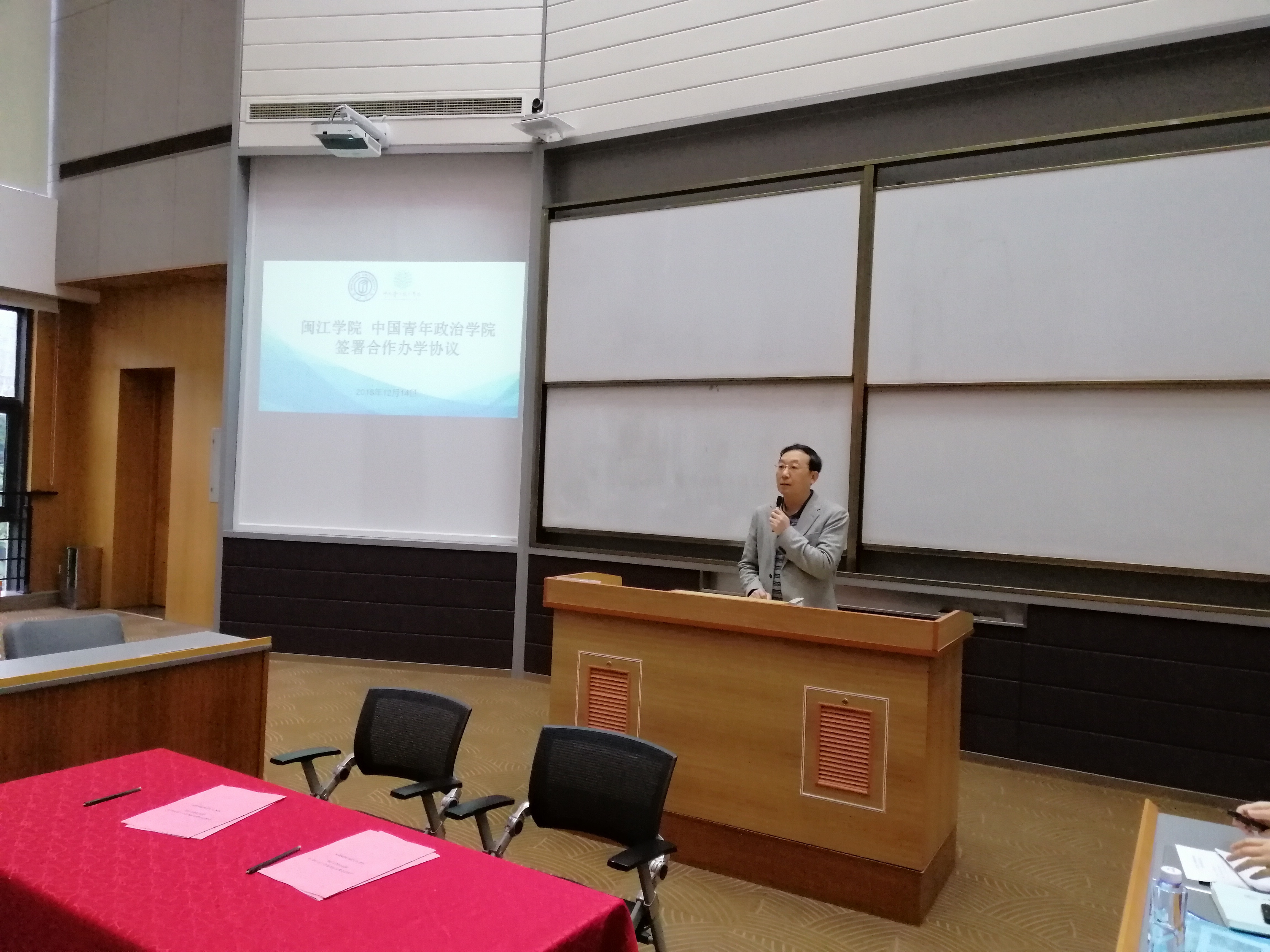 签署仪式上,吴建铭副校长发表了热情洋溢的讲话。他指出,闽江新澳门六合彩预测 社会工作专业有着较早的办学历史,为社会输送了一批人才。为了适应学校应用性转型和社会需求发展,去年开始申办社会工作本科专业,也得到了较快的发展,但如何更好地适应社会需求、实现本土化,寻求突破和出路,需要我们更好地琢磨。中国青年政治新澳门六合彩预测 是国内较早开设社会工作专业的院校,享有很高的知名度,有着丰富的办学经验和强大的师资,为国家培养许多优秀的社工人才,特别是在青少年研究方面有着很大的影响力。希望通过此次合作,充分发挥中国青年政治新澳门六合彩预测 社会工作新澳门六合彩预测 的优势,把闽江新澳门六合彩预测 社会工作专业办的更好。