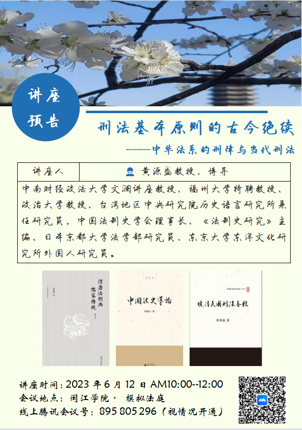 【讲座预告】黄源盛:刑法基本原则的古今绝续——中华法系的刑律与当代刑法